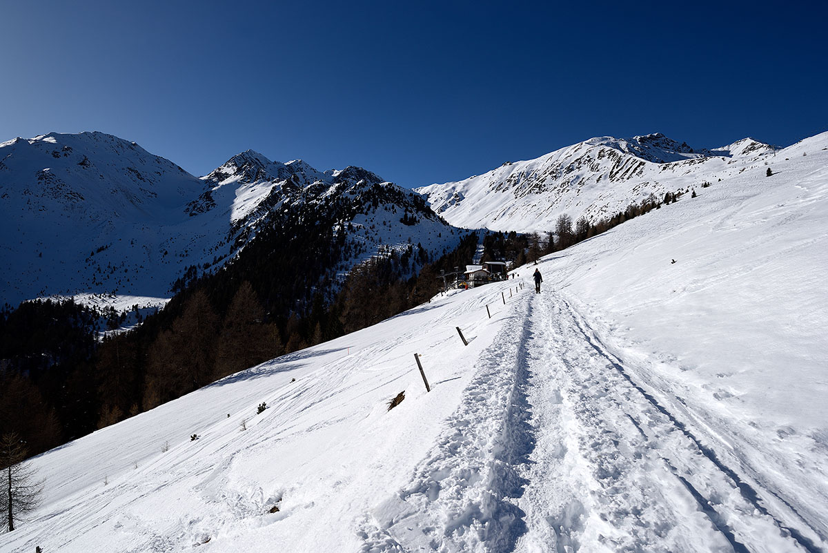 L'escursione invernale segue la strada forestale che parte dalla riserva naturale (WILDGEHEGE) di Paese Stelvio, ove lasciamo l'auto, quindi molto più in alto rispetto al campo sportivo, dopodichè si giunge alla Malga Prato e poi fino al Rifugio Forcola. Consigliate calzature adatte in quanto la neve potrebbe non essere battuta sufficientemente. Tempo impiegato h 1,45 circa. |