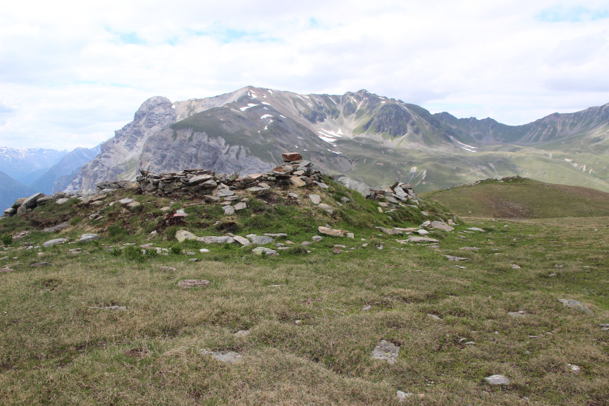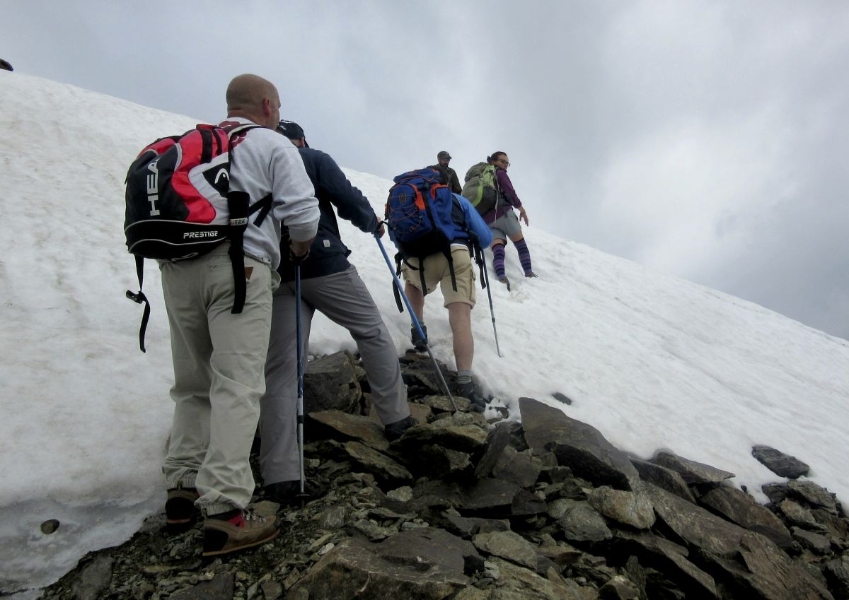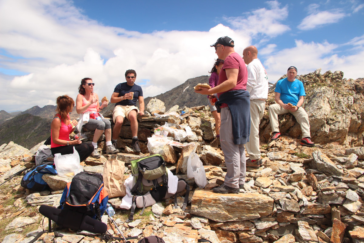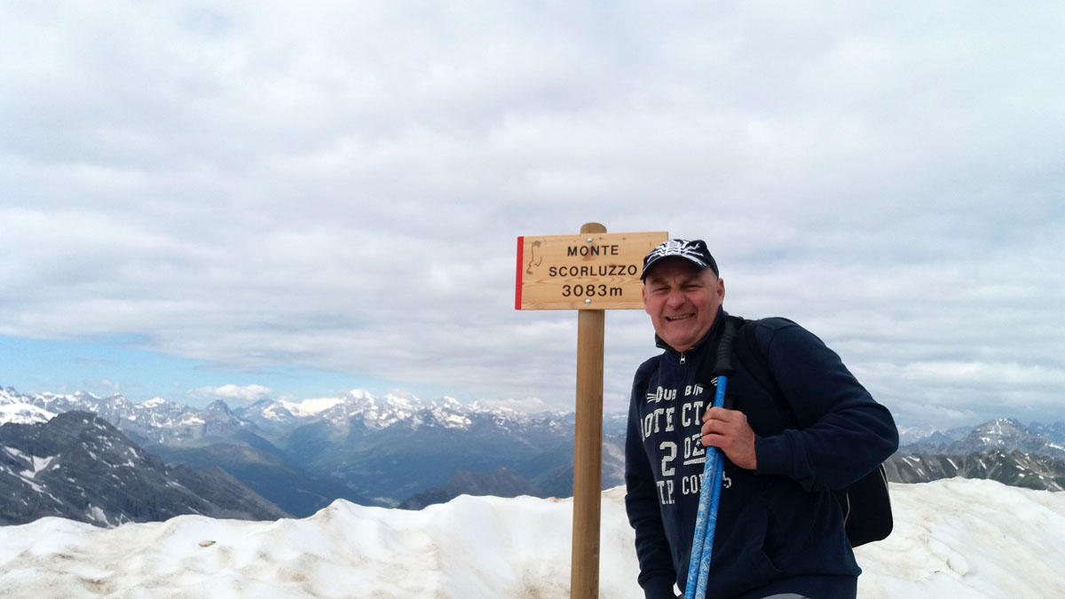 La cima Garibaldi sembra guardarci per vedere dove andiamo. C'è ancora molta neve, ma proviamo a fare il Filon de Mot salendo dal Monte Scorluzzo. La giornata è molto brutta, ma abbiamo preso le nostre precauzioni! Per tornare qui a piedi dalla valle del Braulio ci vorranno circa 8 ore di cammino. |