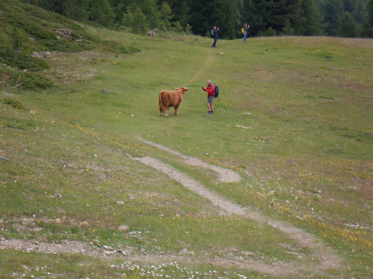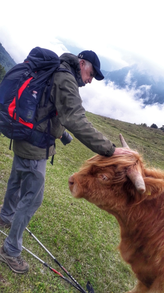 Sul sentiero incontriamo una mucca Highlander, direi abbastanza pacifica. |