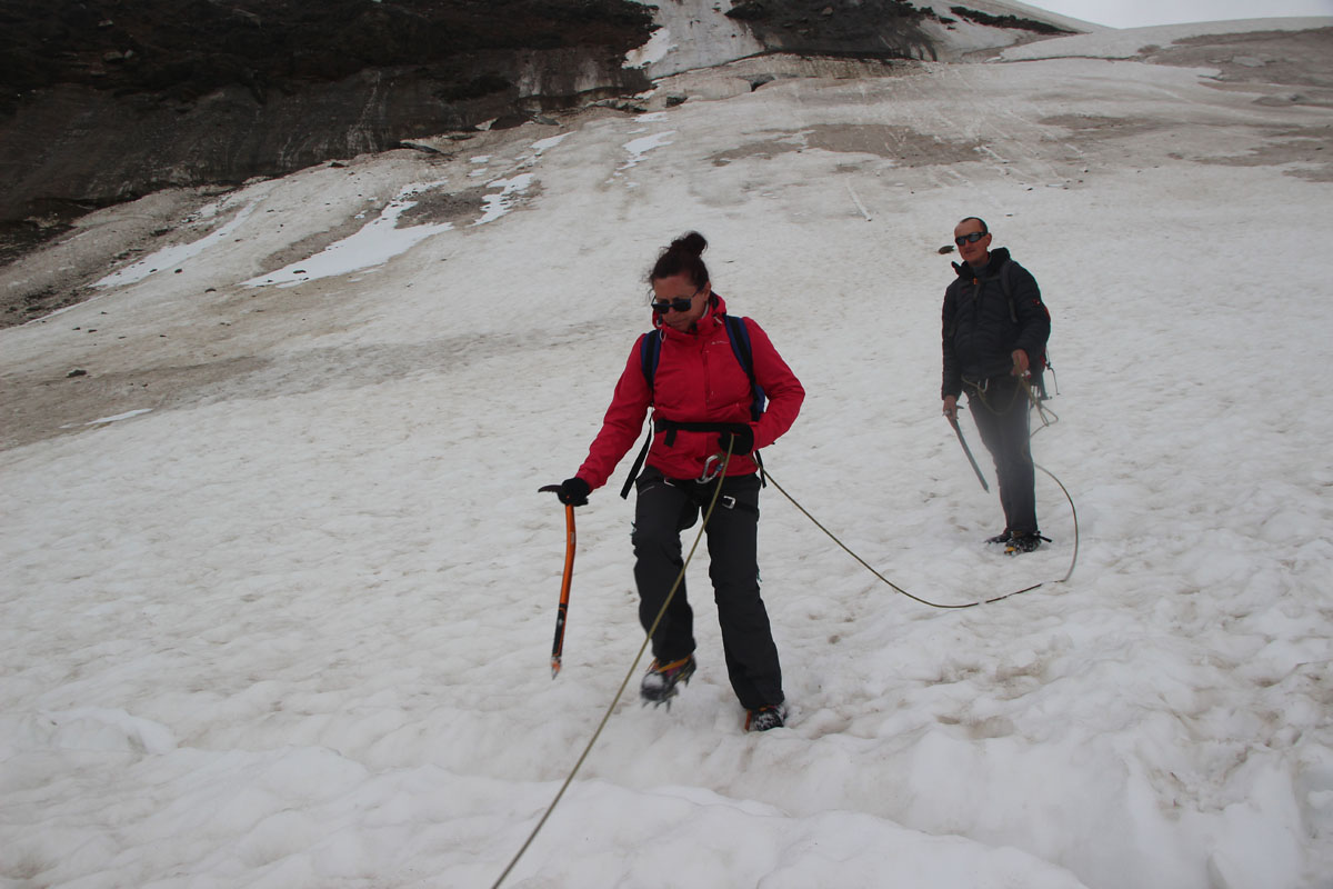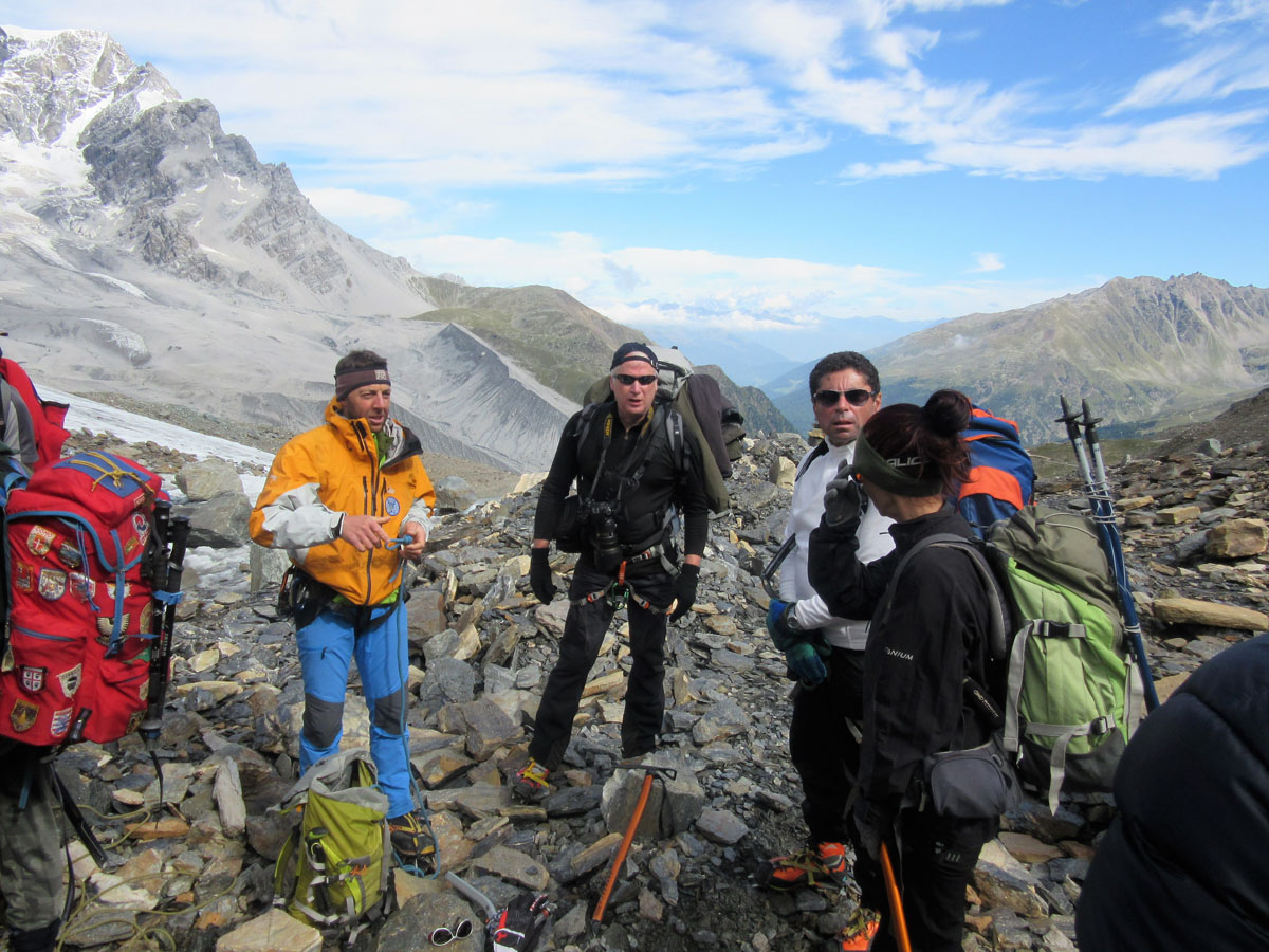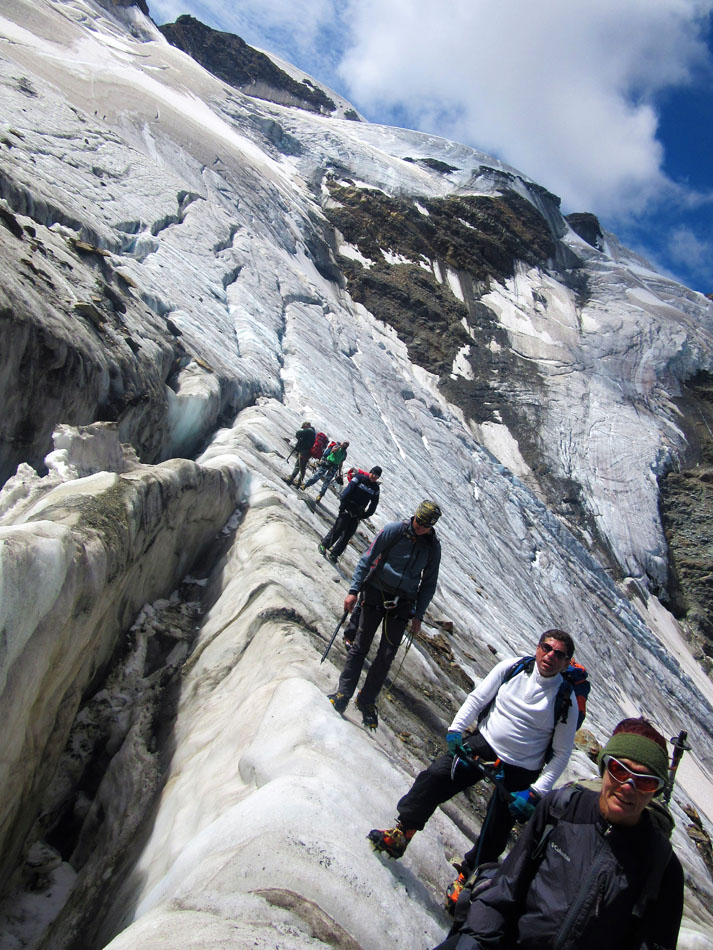 Ora lasciamo il ghiacciaio di Solda ed iniziamo un pezzo un po' difficile su terreno molto ripido. |